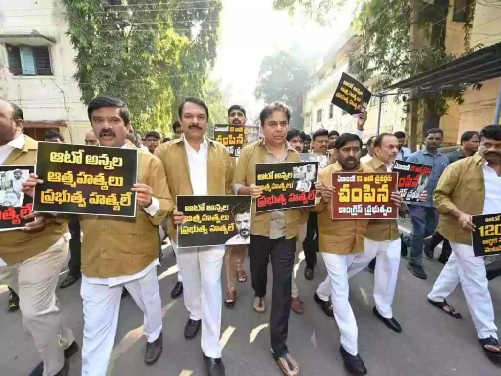 ర్యాలీ సందర్భంగా కేటీఆర్ మీడియాతో మాట్లాడారు. 2023 అసెంబ్లీ ఎన్నికల సందర్భంగా ఆటో డ్రైవర్లకు కాంగ్రెస్ అనేక హామీలు ఇచ్చిందని, వాటిని నేటికీ నెరవేర్చలేదని మండిపడ్డారు. రాష్ట్ర జనాభాలో సుమారు 8 లక్షల మంది ఉన్న ఆటో డ్రైవర్లకు రేవంత్ సర్కారు అన్యాయం చేస్తోందని విమర్శించారు. తాము అధికారంలోకి వస్తే ఆటో డ్రైవర్లకు అనేక ప్రయోజనాలు కూర్చుతామని ఎన్నికల ముందు ప్రగల్బాలు పలికిన కాంగ్రెస్ తన మాటను నిలబెట్టుకోలేదని ధ్వజమెత్తారు. కాంగ్రెస్ అధికారంలోకి వచ్చాక బతుకు దుర్భరమై 93 మంది ఆటో డ్రైవర్లు ఆత్మహత్య చేసుకున్నారని ఆవేదన వ్యక్తం చేశారు. ‘ఆత్మహత్య చేసుకున్న ఆటో డ్రైవర్ల జాబితాను గత అసెంబ్లీ సమావేశాల్లో మేం సమర్పించాం. అయినా